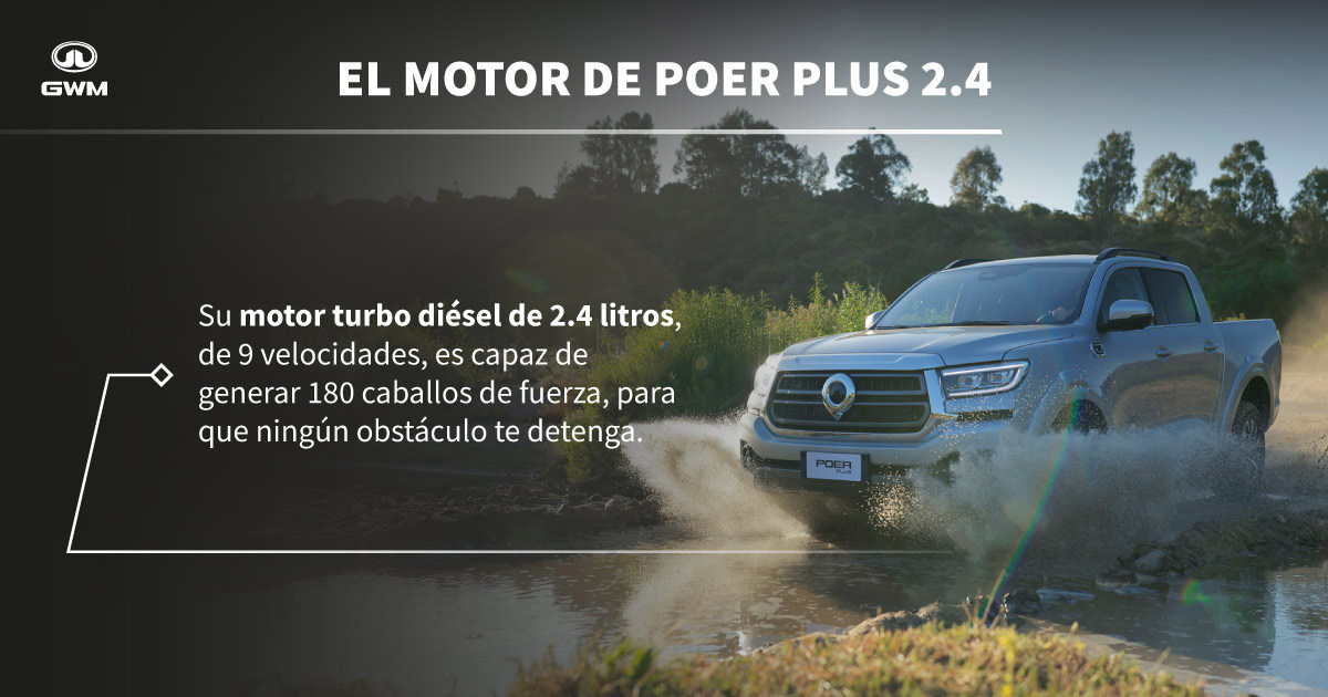 La nueva Poer Plus 2.4 Turbo Automática viene a complementar la oferta de camionetas que GWM dispone en el país. Este vehículo se posiciona un escalón más arriba de la actual Poer Plus, por lo que está preparado para enfrentar con éxito los terrenos más difíciles, sin importar los caminos que recorras.