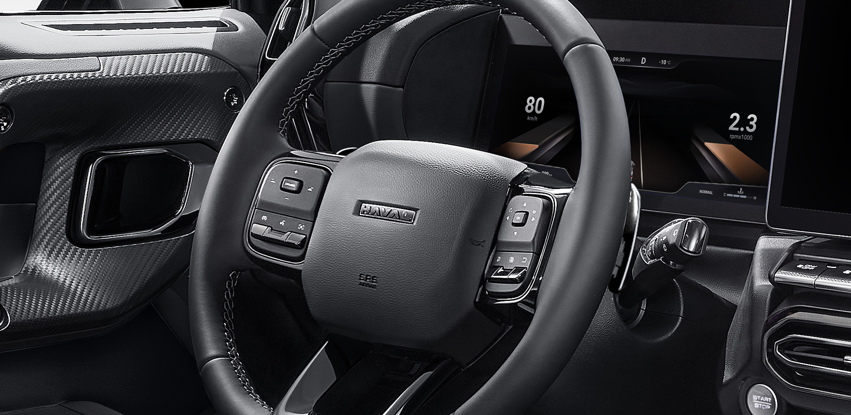 El volante multifunción de HAVAL H7 deja a tu alcance todo lo que necesites para disfrutar de tu SUV todoterreno entregándote un viaje cómodo y seguro.