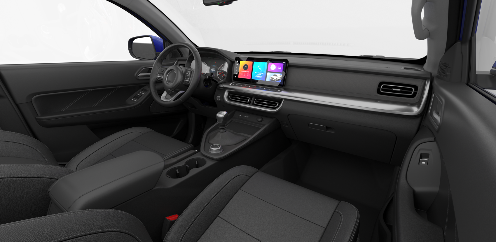 Equipada con conectividad Bluetooth, Apple CarPlay y Android Auto, la camioneta doble cabina POER permite una integración perfecta con tu dispositivo móvil desde la pantalla táctil de 12,3".